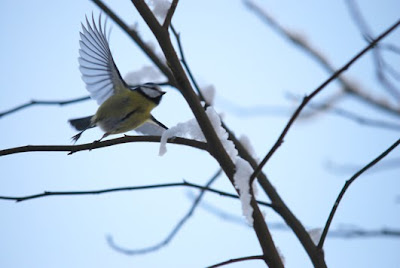 ...von einem Vogel der gerade die Fluegel spreizt und Anlauf nimmt um loszufliegen.